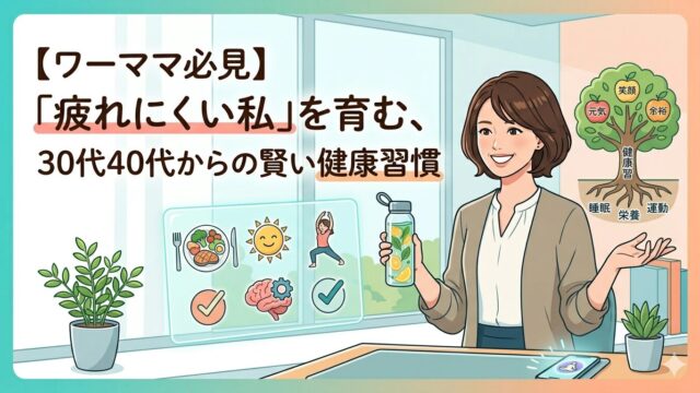 Wellness 【ワーママ必見】「疲れにくい私」を育む、30代40代からの賢い健康習慣 aki 健康 毎日、仕事に家事に育児に、本当にお疲れ様です。30代・40代の働く女性、特にワーママの皆さんは、「疲れた」が口癖になっていませんか? …